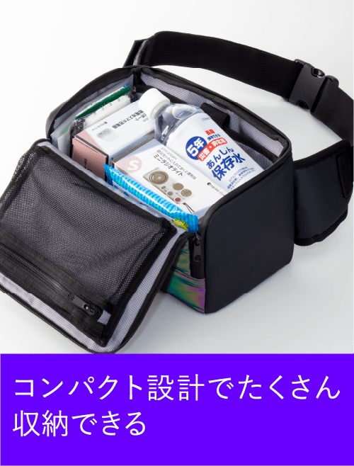 BOX型のバッグに防災グッズをコンパクトに収納可能!